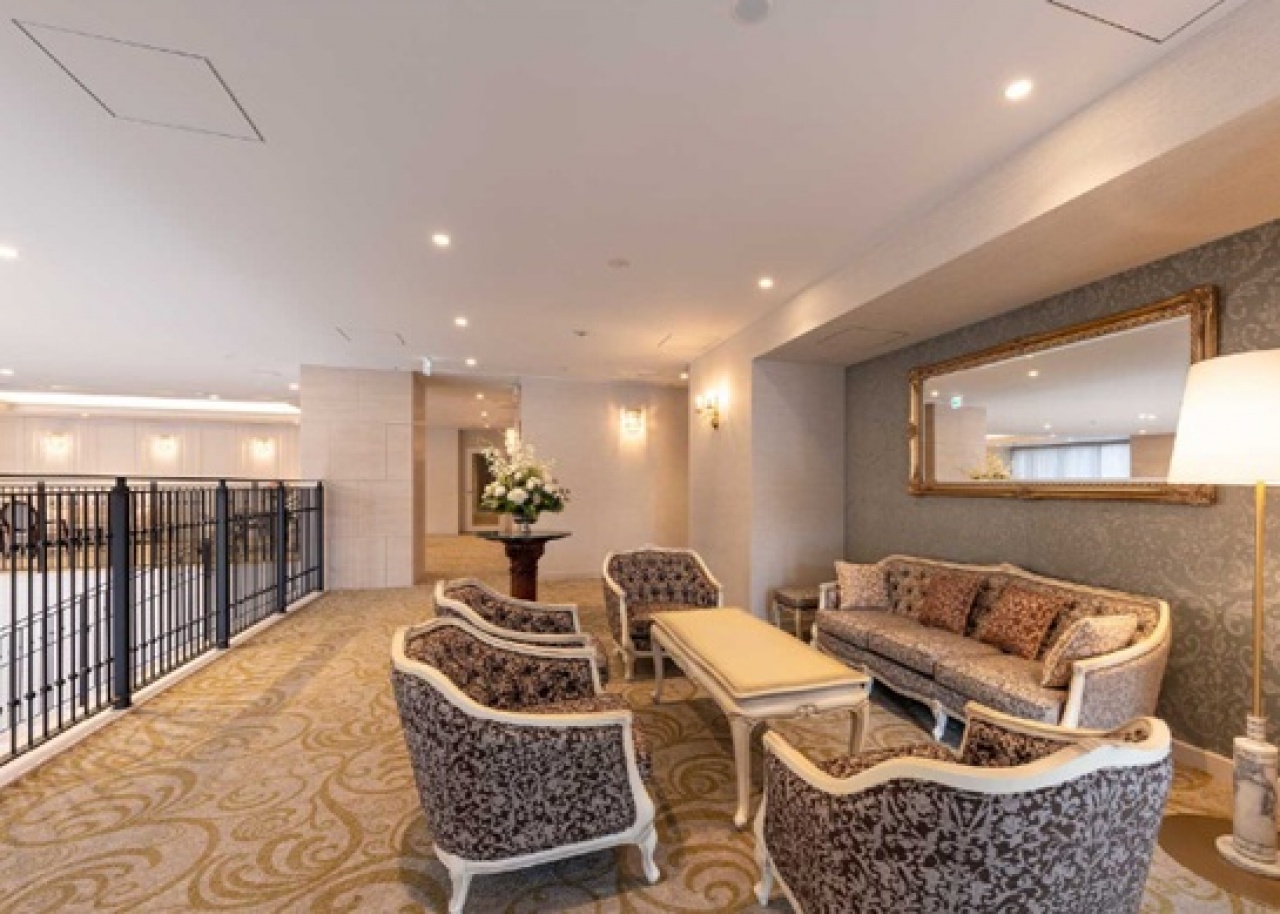 2Fに設けた「ロビー」は、「旧 宝塚ホテル」のコミュニティスペースに思いを馳せ、往時のホテルで愛用されていた家具やブラケット照明などで落ち着いた空間に。同じく2Fの開放的な吹抜けサイドには、上質な雰囲気でくつろげる「ラウンジ」をご用意しています。